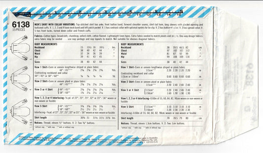 Patrón de costura vintage de los años 80 Simplicity 6138 HENRY GRETHEL para camisas de hombre con cuello, variaciones, talla 42, sin cortar, doblado de fábrica