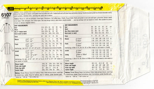 Simplicity 6107 TAHARI Womens Pants Suit & Blouse 1980s Vintage Sewing Pattern Size 16 Bust 38 Inches UNCUT Factory Folded