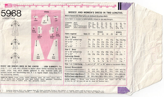 Patrón de costura vintage de los años 70 para vestido camisero o vestido largo de cintura alta para mujer Simplicity 5968, talla 14, busto 36 pulgadas