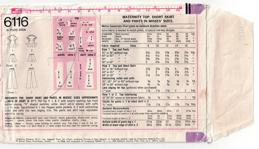 Simplicity 6116 Maternity Wide Collar Top Skirt & Pants 1970s Vintage Sewing Pattern Size 12 Bust 34 inches