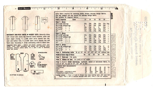 Patrón de costura vintage de los años 60 para vestido de maternidad con cuello para mujer Simplicity 6023, talla 12, busto de 32 pulgadas