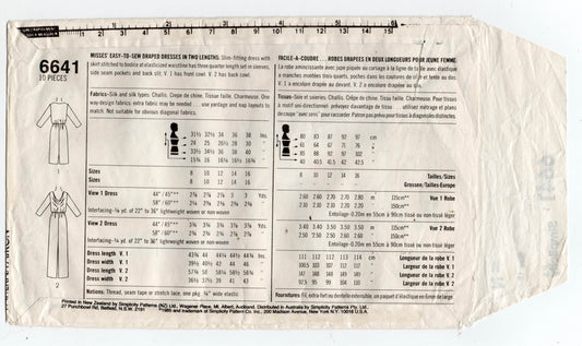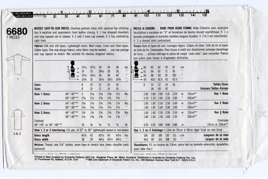 Patrón de costura vintage de los años 80 para vestido de mujer LAUREN HUTTON con drapeado lateral y bloques de color Simplicity 6680, talla 12, busto 34 pulgadas