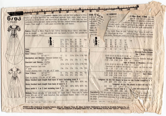 Patrón de costura vintage de los años 80 para vestido de novia o dama de honor con hombros descubiertos Simplicity 6763 de Michele Piccione, talla 16, busto 38 pulgadas