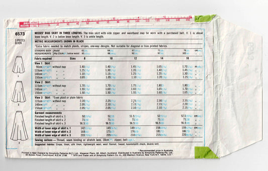 Patrón de costura vintage de los años 70 para faldas largas y midi acampanadas Simplicity 6573 para mujer, talla 16, cintura 30 pulgadas