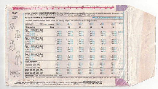 Patrón de costura vintage de los años 70 Simplicity 6746 para mujer, falda con corte al bies, 4 largos y lazo, talla 12, cintura 26,5 pulgadas