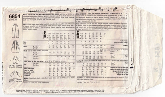 Patrón de costura vintage de los años 80 Simplicity 6854 para pantalones cortos, faldas y tops cortos para mujer, talla 12-16, sin cortar, doblado de fábrica