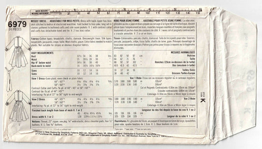 Patrón de costura vintage de los años 80 para vestido camisero o vestido con cuello bies de la colección Connoisseur de Simplicity 6979, talla 16, busto de 38 pulgadas, sin cortar, doblado de fábrica