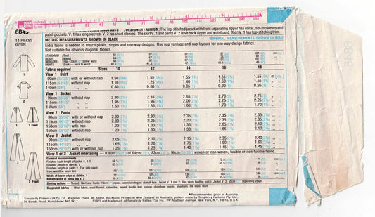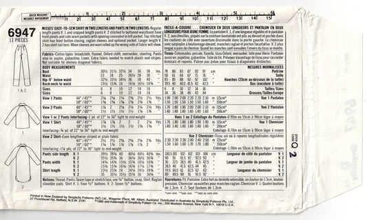 Simplicity 6947 Womens Classic Shirt & Pants 1980s Vintage Sewing Pattern Size 10 - 14 UNCUT Factory Folded