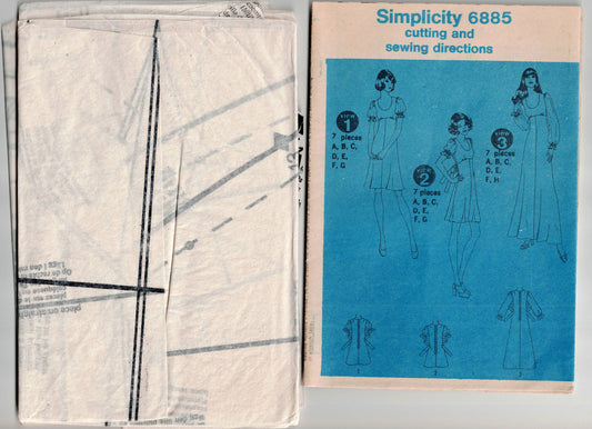 Simplicity 6890 Womens JIFFY Caftan Dress or Top 1970s Vintage Sewing Pattern Size MED 12 - 14