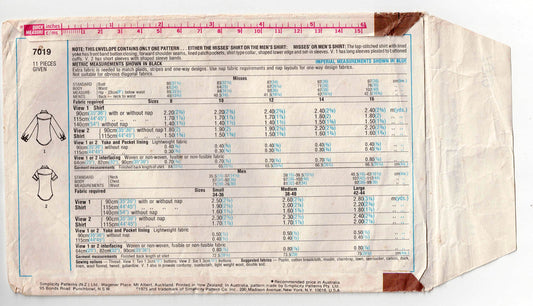 Patrón de costura vintage de los años 70 para camisas de cuello ancho para hombre Simplicity 7019, talla GRANDE 42-44, sin cortar, doblado de fábrica
