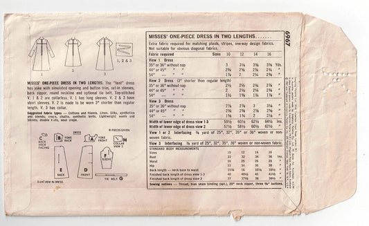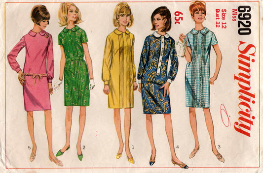 Patrón de costura vintage de los años 60 para vestido con cuello Peter Pan Simplicity 6920, talla 12, busto 32 pulgadas
