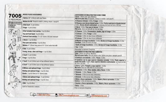 Patrón de costura Simplicity 7005 para gorros, bufandas, mitones y guantes de invierno para mujer, sin cortar, doblado de fábrica