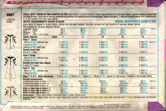 Patrón de costura vintage de los años 70 para niñas Simplicity 6867, vestido o blusa maxi con mangas acampanadas y escote cuadrado, talla 7 u 8
