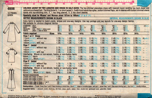 Patrón de costura vintage de los años 70 para vestido y chaqueta de mujer Simplicity 6856, tallas 10 1/2 y 12 1/2, busto de 33 y 35 pulgadas, sin cortar, doblado de fábrica