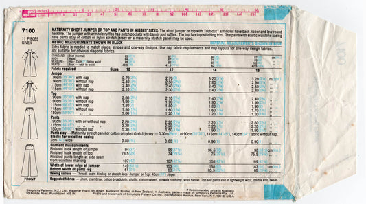 Patrón de costura vintage de los años 70 para guardarropa de maternidad retro de mujer Simplicity 7100, talla 12, busto de 34 pulgadas