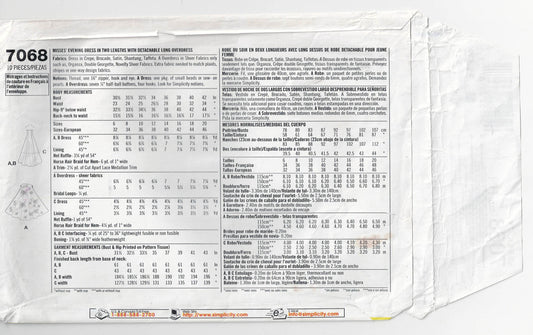 Patrón de costura agotado para vestido de noche o de novia sin tirantes y sobrevestido desmontable para mujer Simplicity 7068, talla 6-12, sin cortar, doblado de fábrica