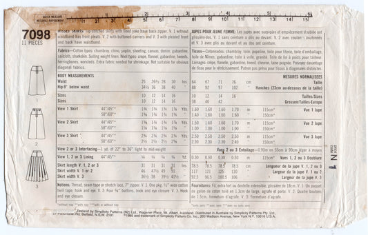 Patrón de costura vintage de los años 80 para faldas plisadas con canesú para mujer Simplicity 7098, talla 10, sin cortar, doblado de fábrica