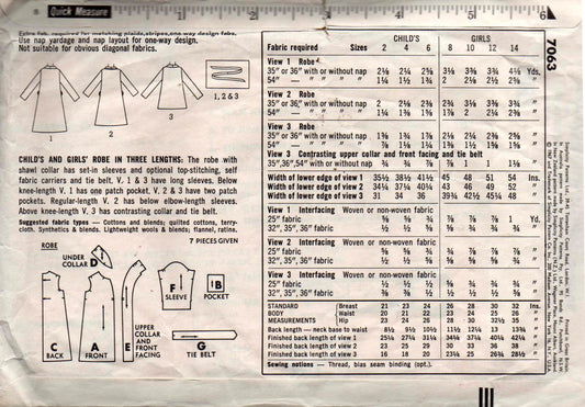 Patrón de costura vintage de los años 60 Simplicity 7063 para bata o pareo para niñas en 3 largos, talla 6