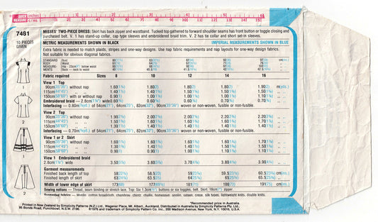 Simplicity 7481 Womens Short Sleeved Top & Skirt 1970s Vintage Sewing Pattern Size 8 Bust 31.5 inches