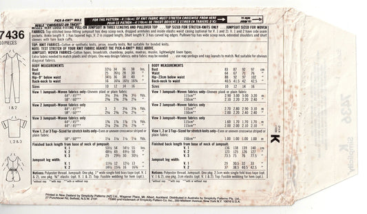 Simplicity 7436 Womens Stretch Knit Jumpsuit & T Shirt 1980s Vintage Sewing Pattern Size 12 - 16 UNCUT Factory Folded