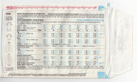 Patrón de costura vintage de los años 70 para vestido y pantalón estilo hippie Simplicity 7430 para mujer, talla 12, busto de 34 pulgadas