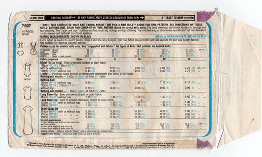 Patrón de costura vintage de los años 70 para traje de baño y pareo Simplicity 7507 para niñas, talla 10