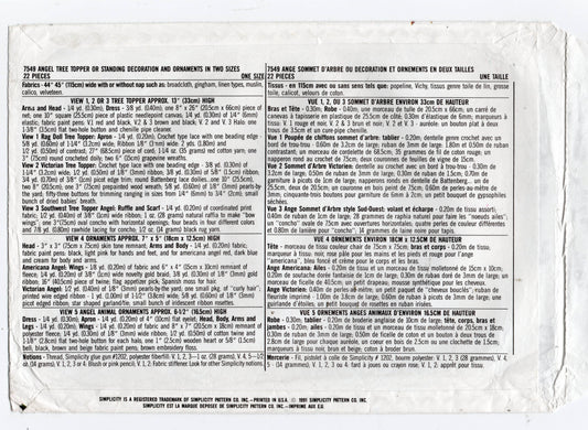 Patrón de costura vintage de los años 90 sin cortar, doblado de fábrica, para adornos navideños Simplicity 7549 Angel Tree Toppers