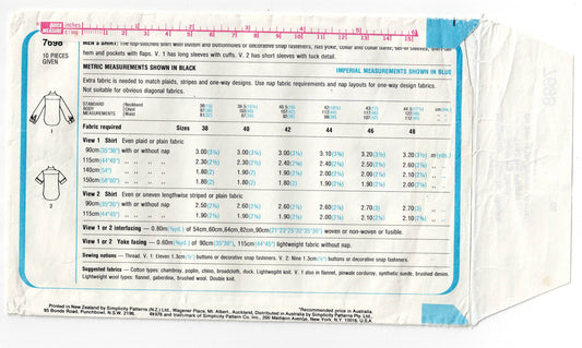 Patrón de costura vintage de los años 70 para camisa de franela con cuello ancho para hombre Simplicity 7698, pecho de 38 pulgadas