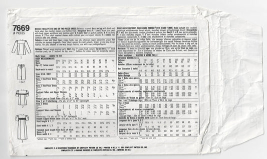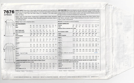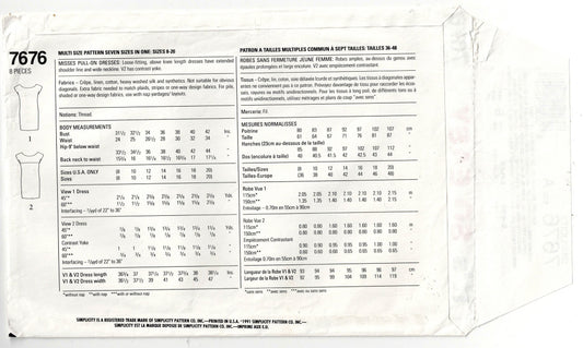 Simplicity 7676 Womens EASY Cap Sleeved Pullover Dress 1990s Vintage Sewing Pattern Size 8 - 20 UNCUT Factory Folded