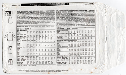 Patrón de costura vintage de los años 90 para guardarropa de mujer Simplicity 7751, sin cortar, doblado de fábrica, talla 10 a 14