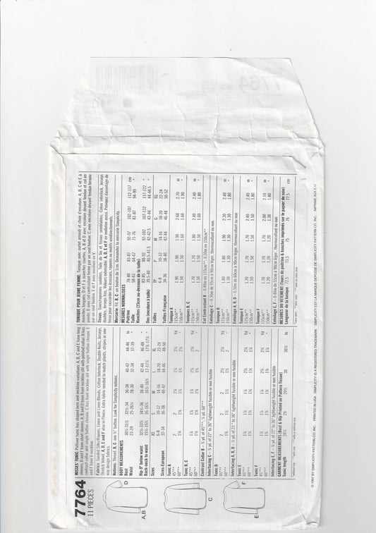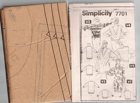 Simplicity 7764 EASY Womens Pullover Tops 6 Styles 1990s Vintage Sewing Pattern Size L, XL UNCUT Factory Folded
