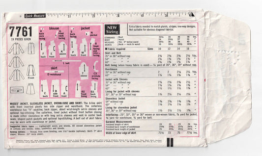 Simplicity 7761 Womens Jacket Vest Top & Inverted Pleat Skirt 1960s Vintage Sewing Pattern Size 12 Bust 34 inches