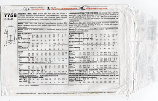 Patrón de costura vintage de los años 90 para vestido de mujer con falda con volantes Simplicity 7758, talla 8 a 12, sin cortar, doblado de fábrica
