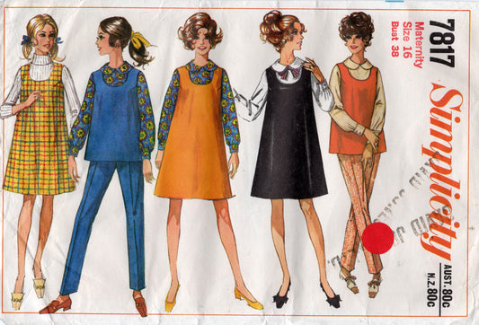 Patrón de costura vintage de los años 70 para conjunto de maternidad Simplicity 7817, talla 16, busto de 38 pulgadas
