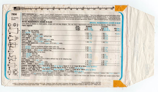 Patrón de costura vintage de los años 70 Simplicity 7830 para bebé, canastilla, saco de dormir, vestido, braguitas, top y comedero, talla recién nacido
