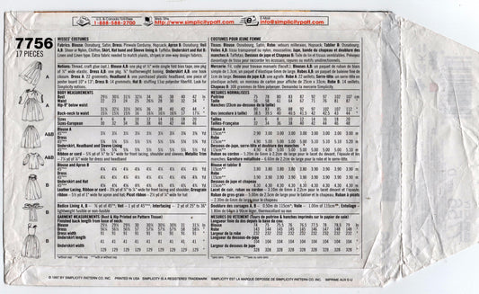 Patrón de costura Simplicity 7756 para traje de realeza renacentista para mujer, década de 1990, talla 4-8, sin cortar, doblado de fábrica