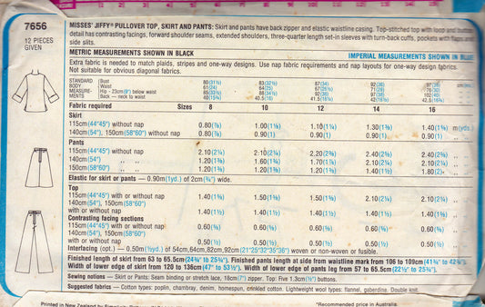 Patrón de costura vintage de los años 70 Simplicity 7765 para mujer, jersey, blusa, falda y pantalones casuales, tallas 12 y 14