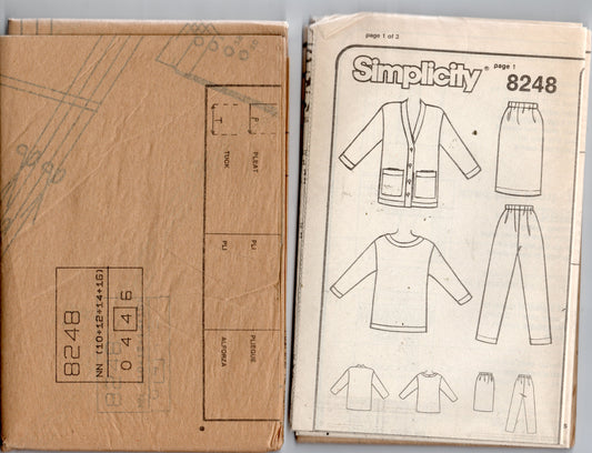 Patrón de costura vintage de los años 80 para guardarropa Simplicity 8248 JIFFY, sin cortar, doblado de fábrica, talla 10-16