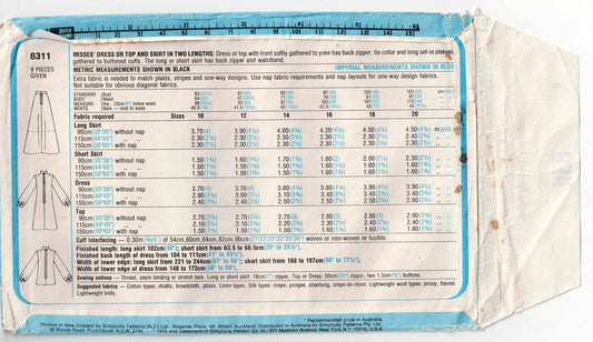 Patrón de costura vintage de los años 70 para vestido y falda con canesú para mujer Simplicity 8311, talla 14, busto de 36 pulgadas, sin cortar, doblado de fábrica