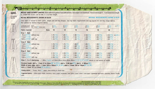 Patrón de costura de falda en forma de A con bolsillos para mujer Simplicity 8295, estilo vintage de los años 70, talla 10, cintura de 25 pulgadas