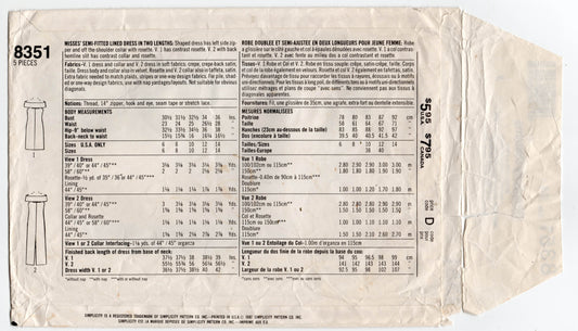 Patrón de costura vintage de los años 70 para vestido o maxivestido con pinzas para mujer Simplicity 8249, talla 14, busto 36 pulgadas