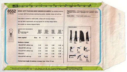 Simplicity 8552 Womens JIFFY PLUS Back Wrap Sundress or Pinafore Dress 1970s Vintage Sewing Pattern Size 14 Bust 36 inches UNCUT Factory Folded