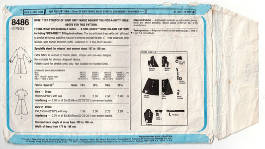 Simplicity 8486 Womens Half Sized Stretch Knit Wrap Dress with Optional Wide Collar 1970s Vintage Sewing Pattern Bust 43 Inches