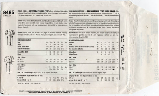 Patrón de costura vintage de los años 80 para vestido de cóctel de noche de manga larga para mujer Simplicity 8485, talla 10, sin cortar, doblado de fábrica