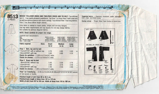 Patrón de costura Simplicity 8513 para vestido, blusa y falda con mangas abullonadas para mujer, estilo vintage de los años 70, talla pequeña 10-12