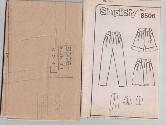 Patrón de costura vintage de los años 80 para pantalones cortos y faldas con pliegues delanteros para mujer Simplicity 8506, cintura de 28 pulgadas, sin cortar, doblado de fábrica
