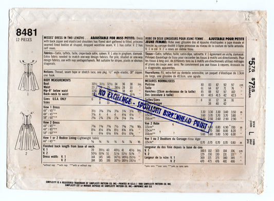 Patrón de costura vintage de los años 80 para vestido de noche con falda amplia Simplicity 8481 para mujer, talla 10, busto 32,5 pulgadas
