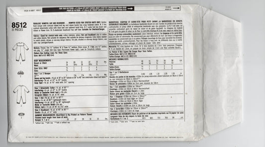 Patrón de costura vintage de los años 90 Simplicity 8512 para traje de marinero elástico para niños pequeños con gorro y diadema, tamaño 6 m - 2, sin cortar, doblado de fábrica