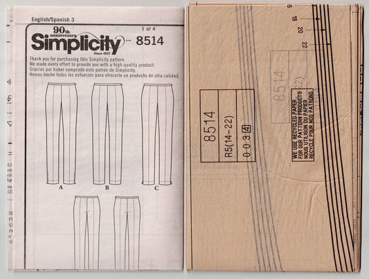 Simplicity 8514 Womens AMAZING FIT Skinny Leg Pants Out Of Print Sewing Pattern Size 14 - 22 UNCUT Factory Folded