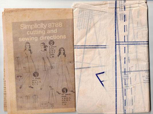 Patrón de costura vintage de los años 70 para vestido y pantalones cortos de princesa para mujer Simplicity 8788, talla 14, busto 36 pulgadas